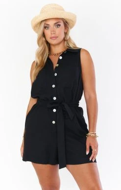 Show Me Your Mumu Milano Romper ~ Black Linen