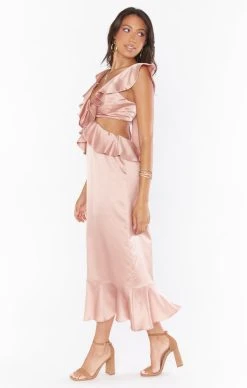 Show Me Your Mumu Zoey Midi Dress ~ Rose Gold Luxe Satin