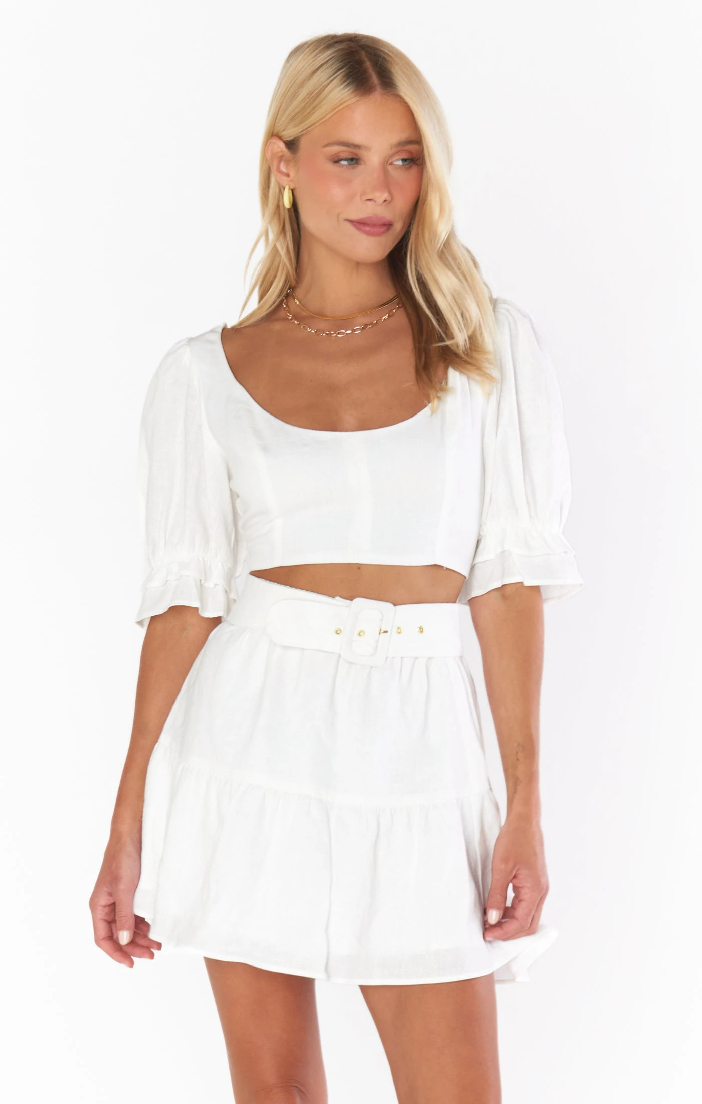 Let the Fiona Top sweep you off your feet! A romantic tie back top with perfectly poofed sleeves. Sweet and versatile, tie the top in the front for an extra flirty feel. Style back with the matching Fiona Skirt and your fave heels.