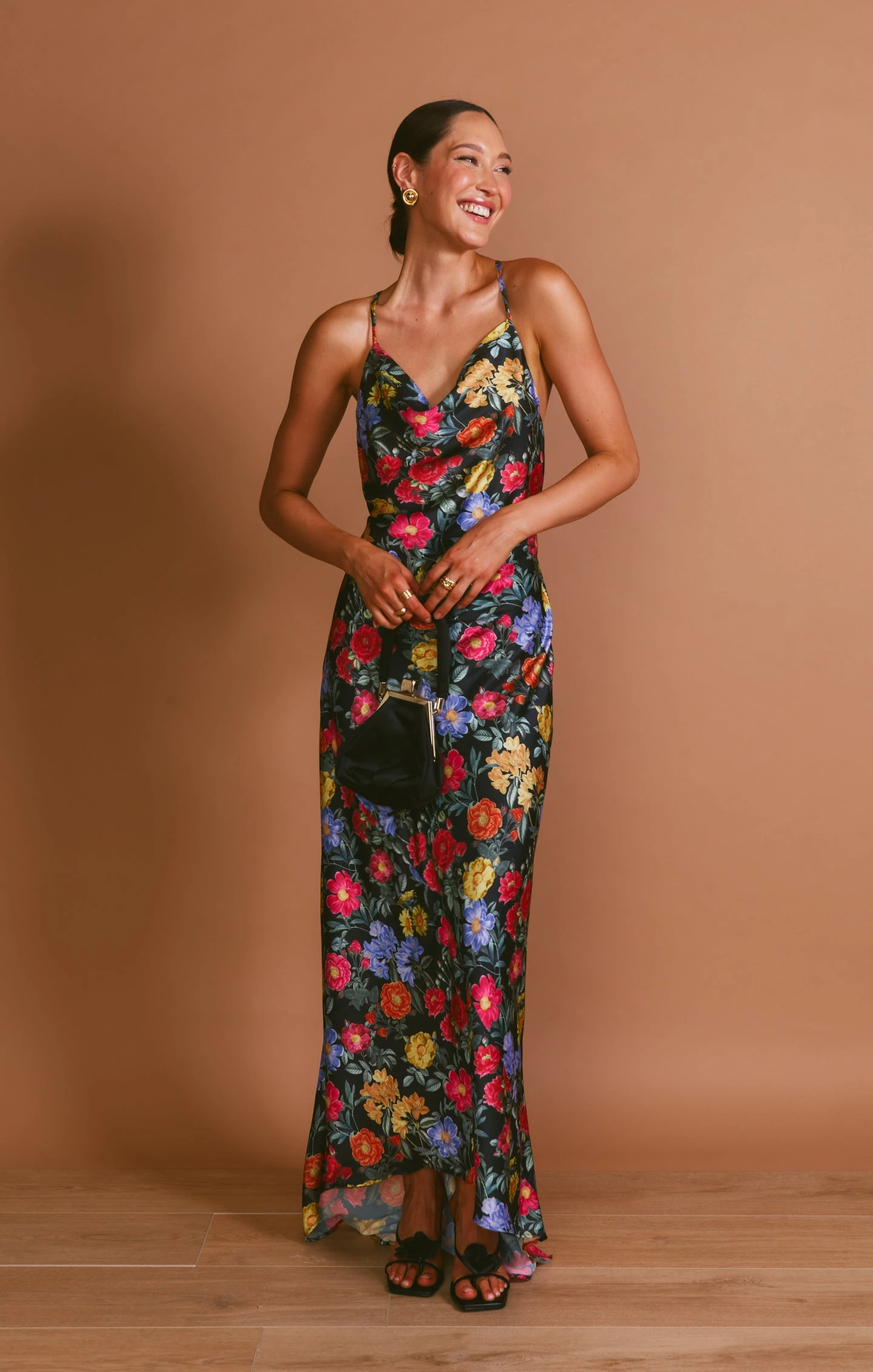 Show Me Your Mumu Hailey Slip Dress ~ Charm Peony Black Luxe Satin