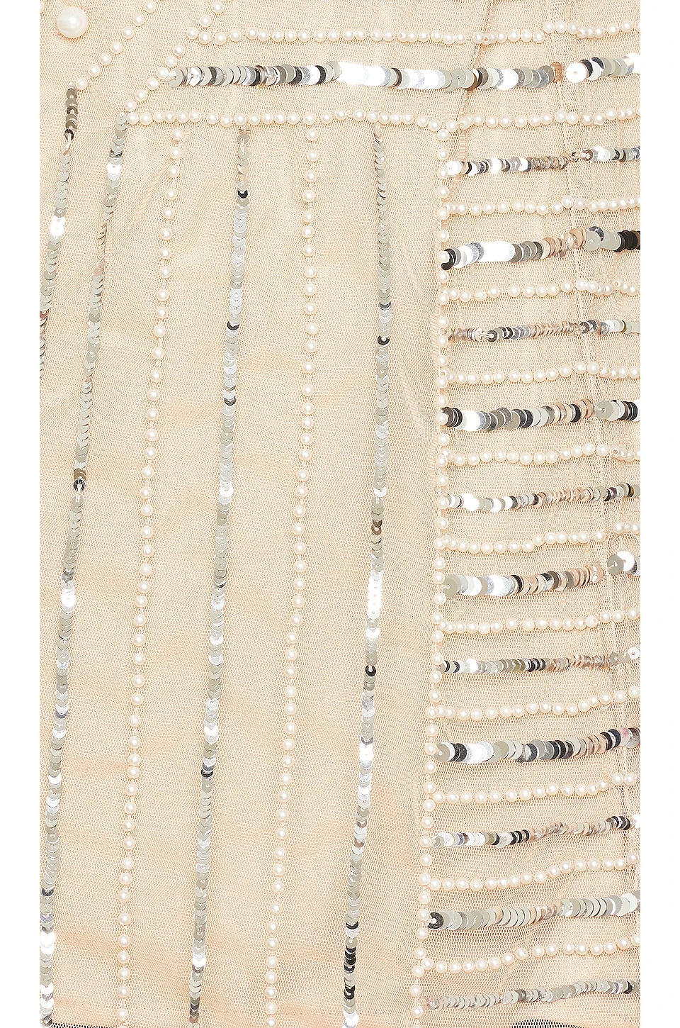 - Mesh fabric with sequin and faux pearl embellishments