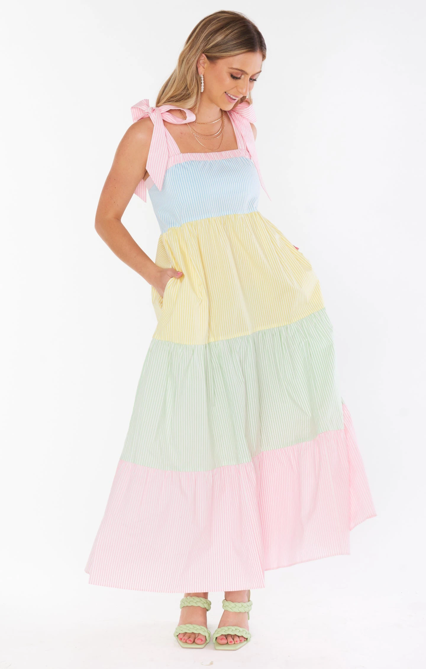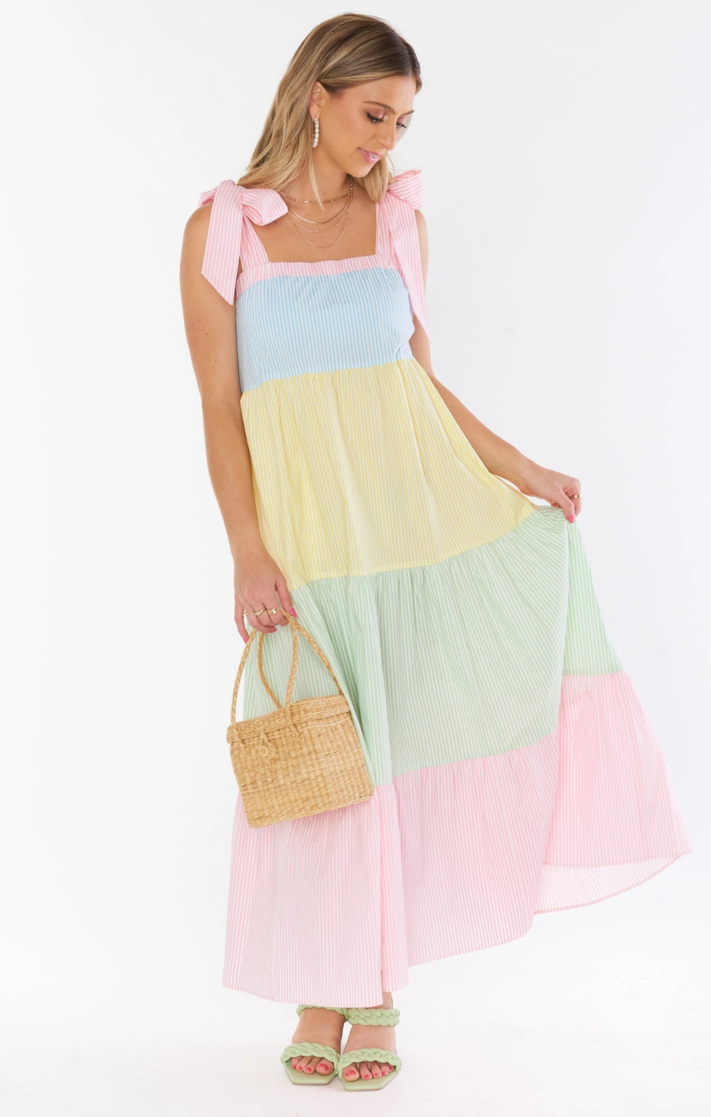 Show Me Your Mumu Sabrina Maxi Dress ~ Mixed Easter Stripe