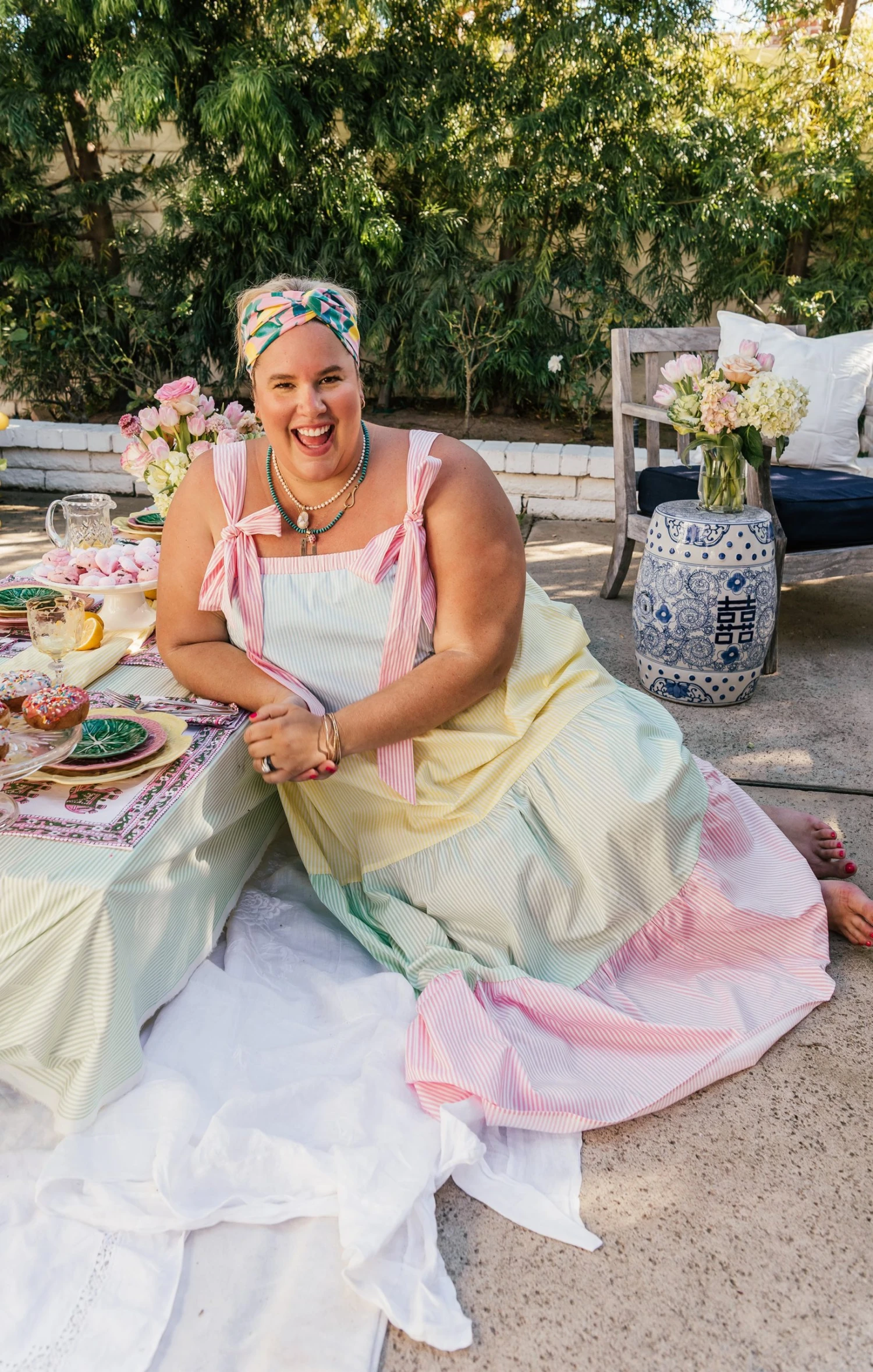 It fills our cup that you’re about to create core memories wearing a collection we had the pleasure to design with Sabrina Chazen. We envision generations matching in these happy frocks. Bows, lemons, and stripes forever! Cheers to you – may this collab put a spring back in your step!