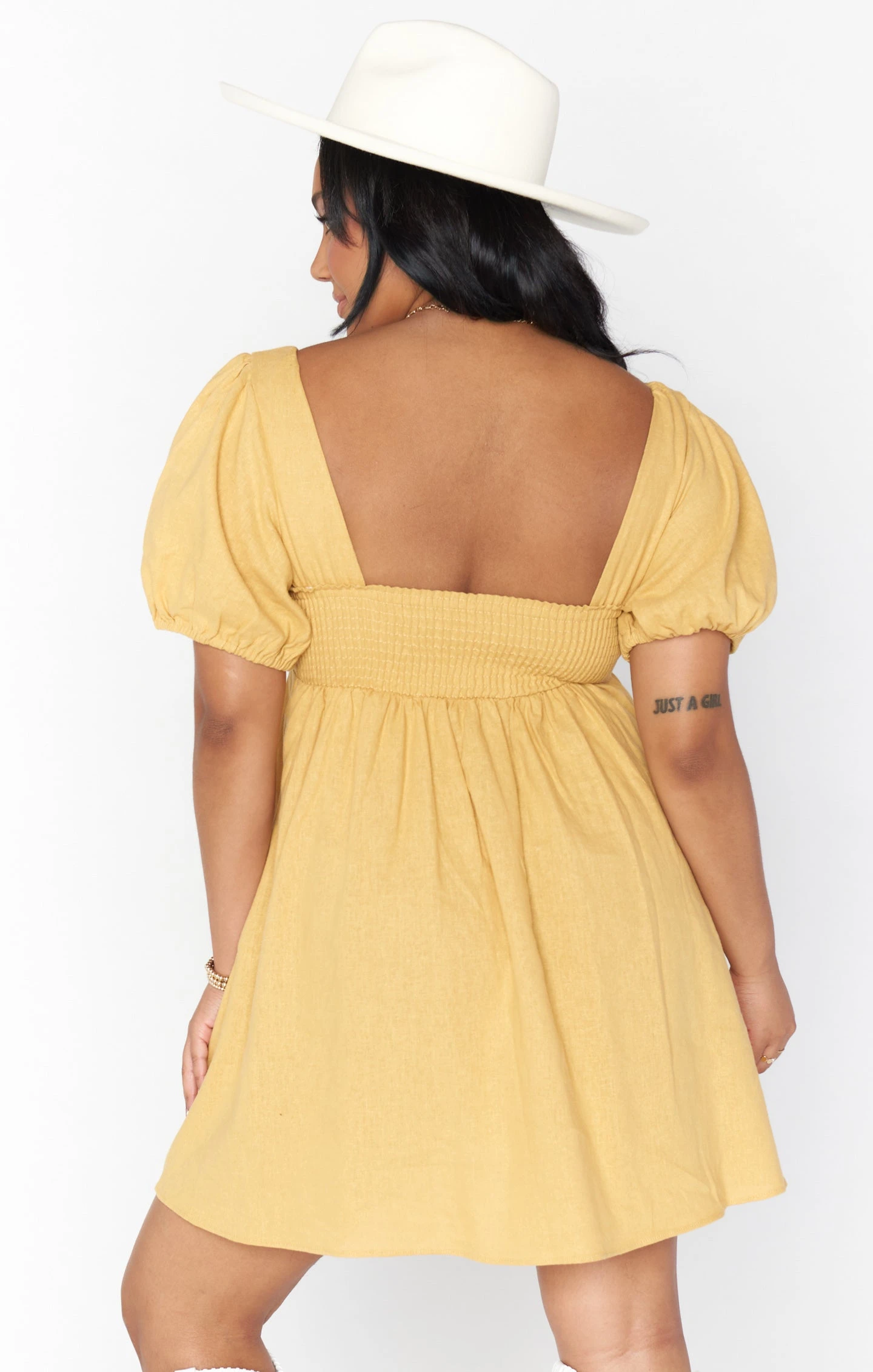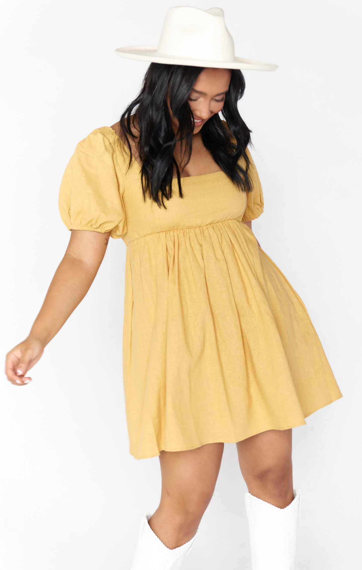 Show Me Your Mumu Smitten Babydoll Dress ~ Marigold Linen
