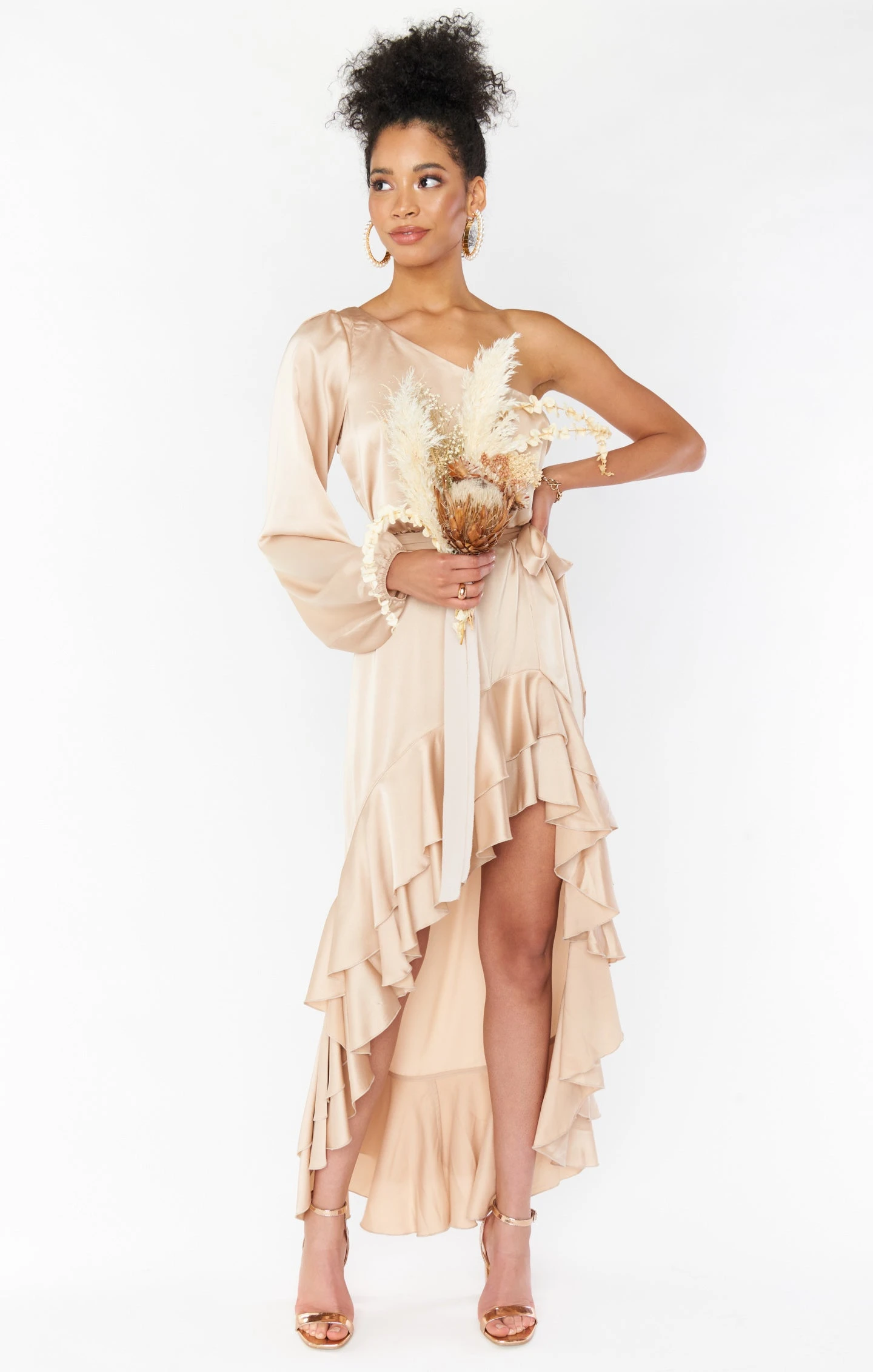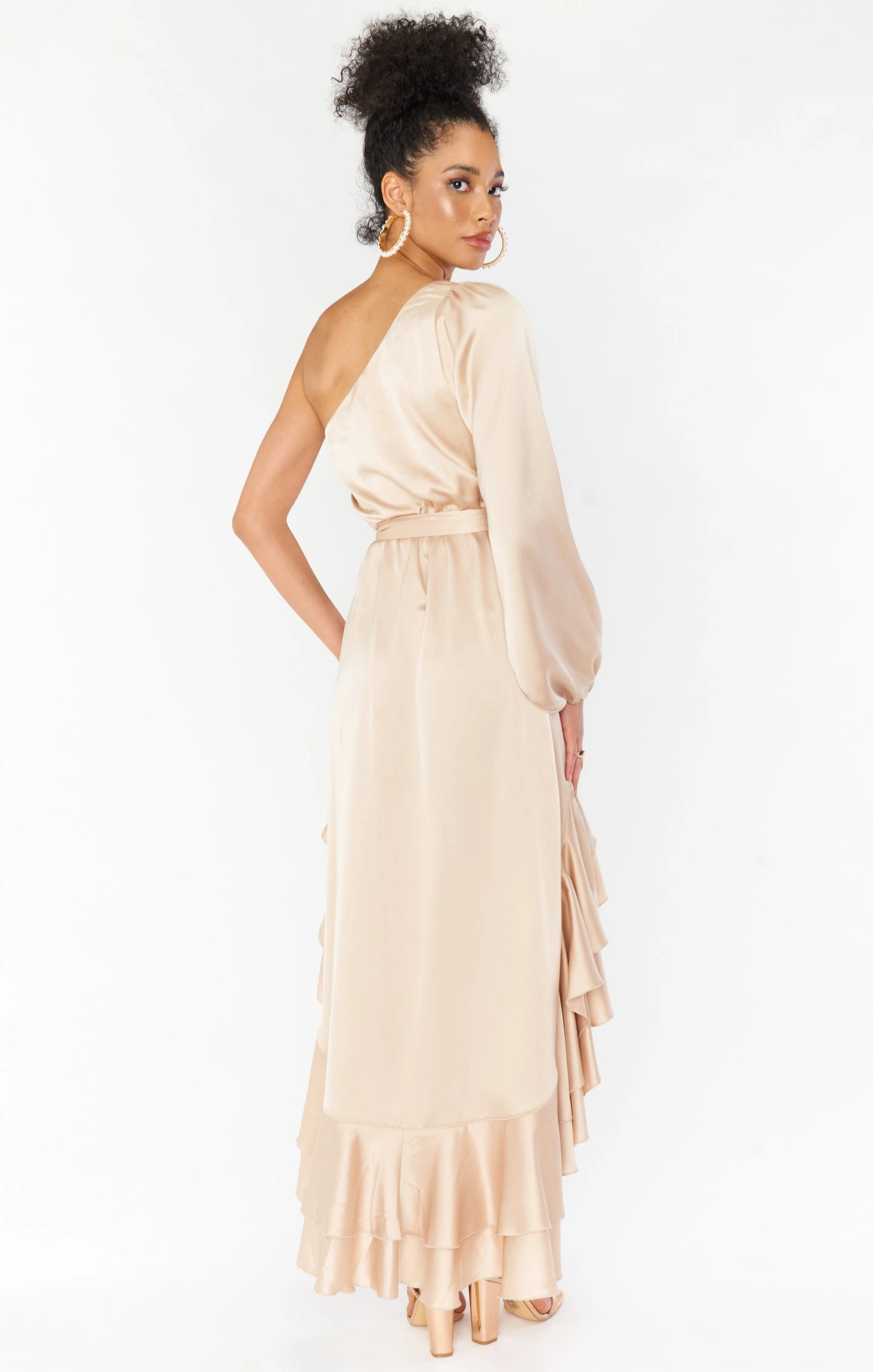 Show Me Your Mumu Stunner Maxi Dress ~ Champagne Luxe Satin