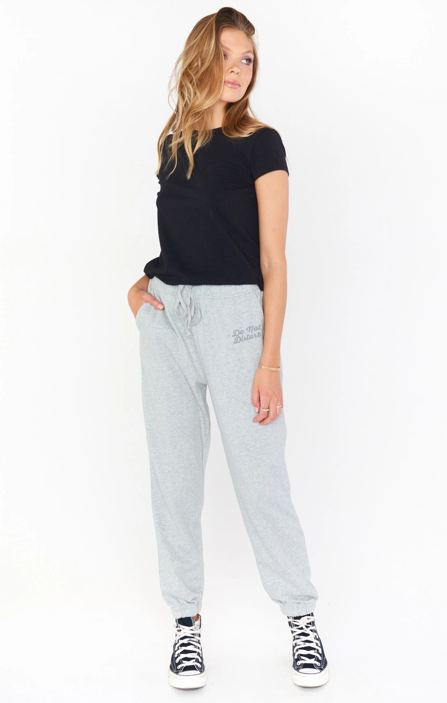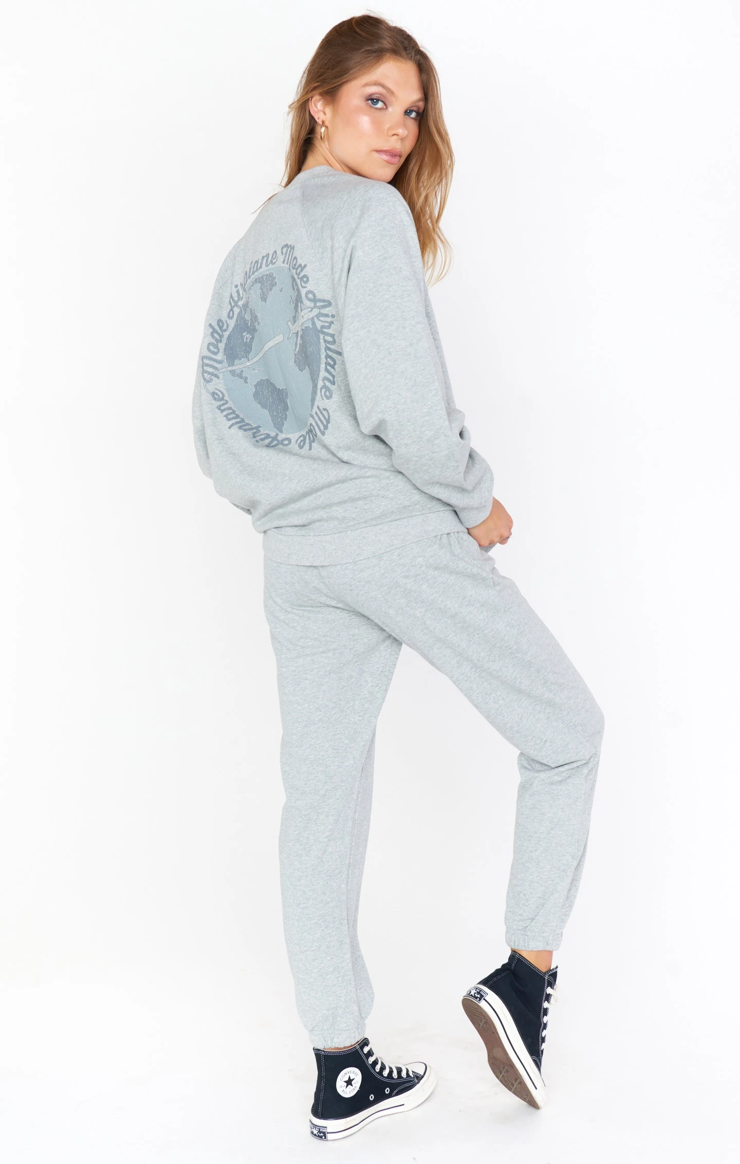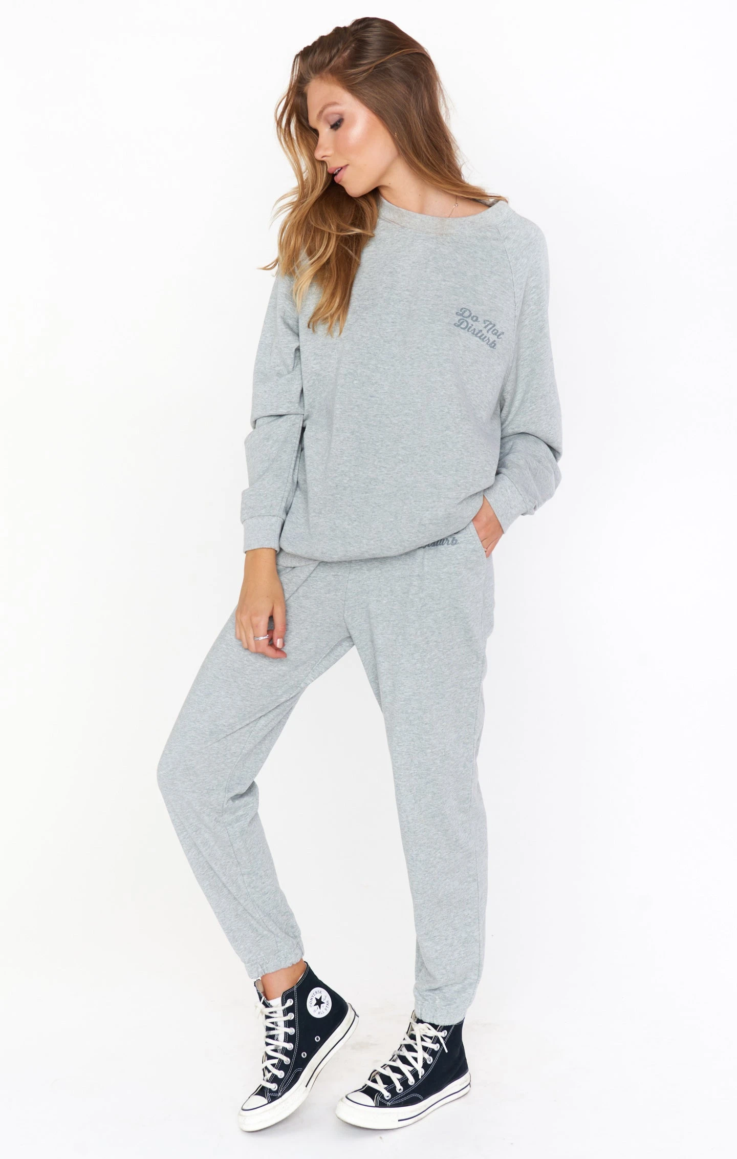 Lounge around the house or take flight in style in our Sunday Sweatpants. The perfect jogger fit with a drawstring waistband and pockets of course! You will fall in love with these grey sweats.