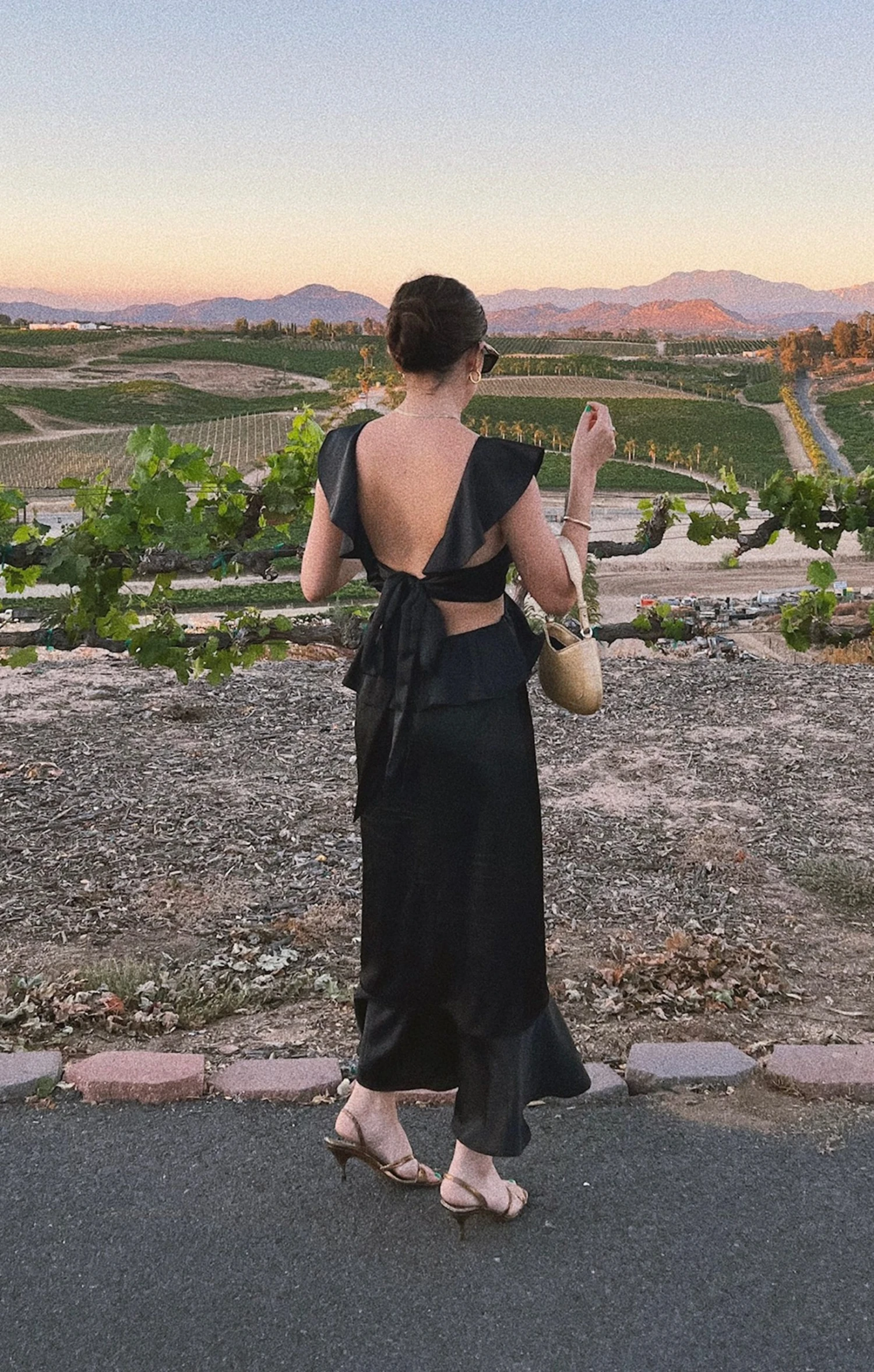 Show Me Your Mumu Zoey Midi Dress ~ Black Luxe Satin