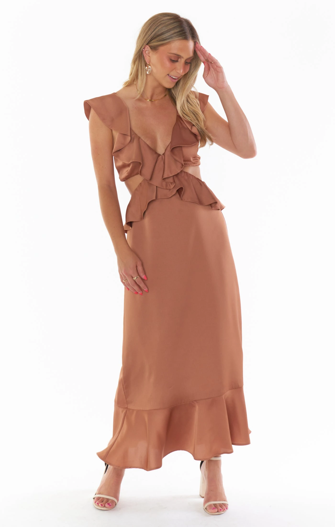 Show Me Your Mumu Zoey Midi Dress ~ Copper Luxe Satin